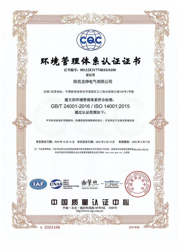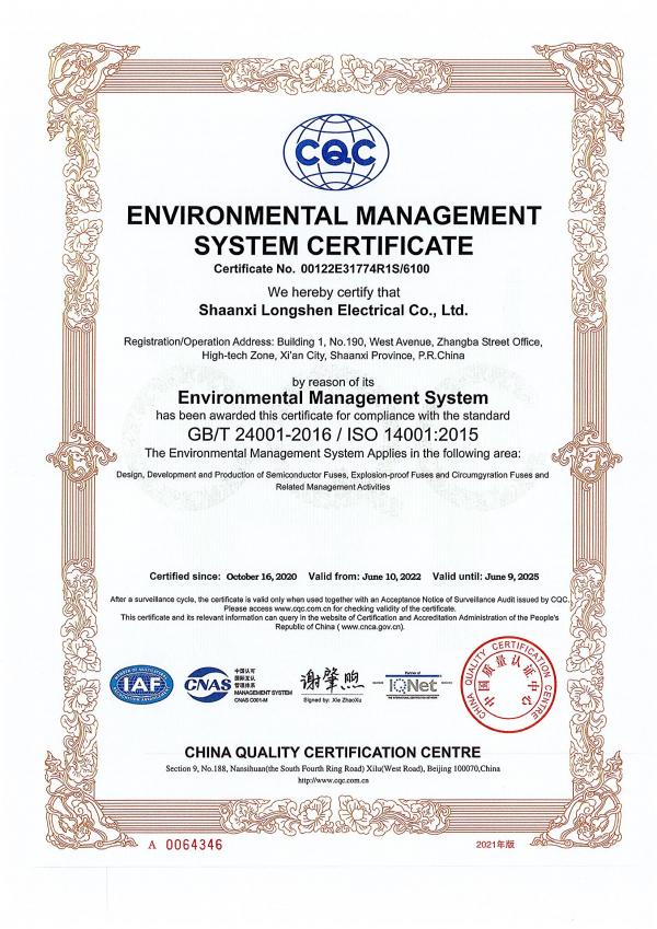 环境管理体系认证证书