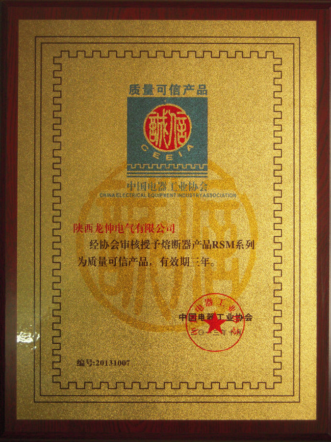 我公司参加了中国电器工业协会变频器分会组织的“关于高、低压变频器、软启动器、伺服驱动器及相关辅件产品的‘质量可信产品’推介工作”,通过中国电器工业协会专家小组的初审与复审,最终我公司产品被评为《质量可信产品》,获得“质量可信产品” 证书,我公司将努力成为行业诚信的模范,不断加强技术创新和质量管理,并且接受协会的追踪式监督和管理,做值得信赖的民族品牌熔断器制造商!